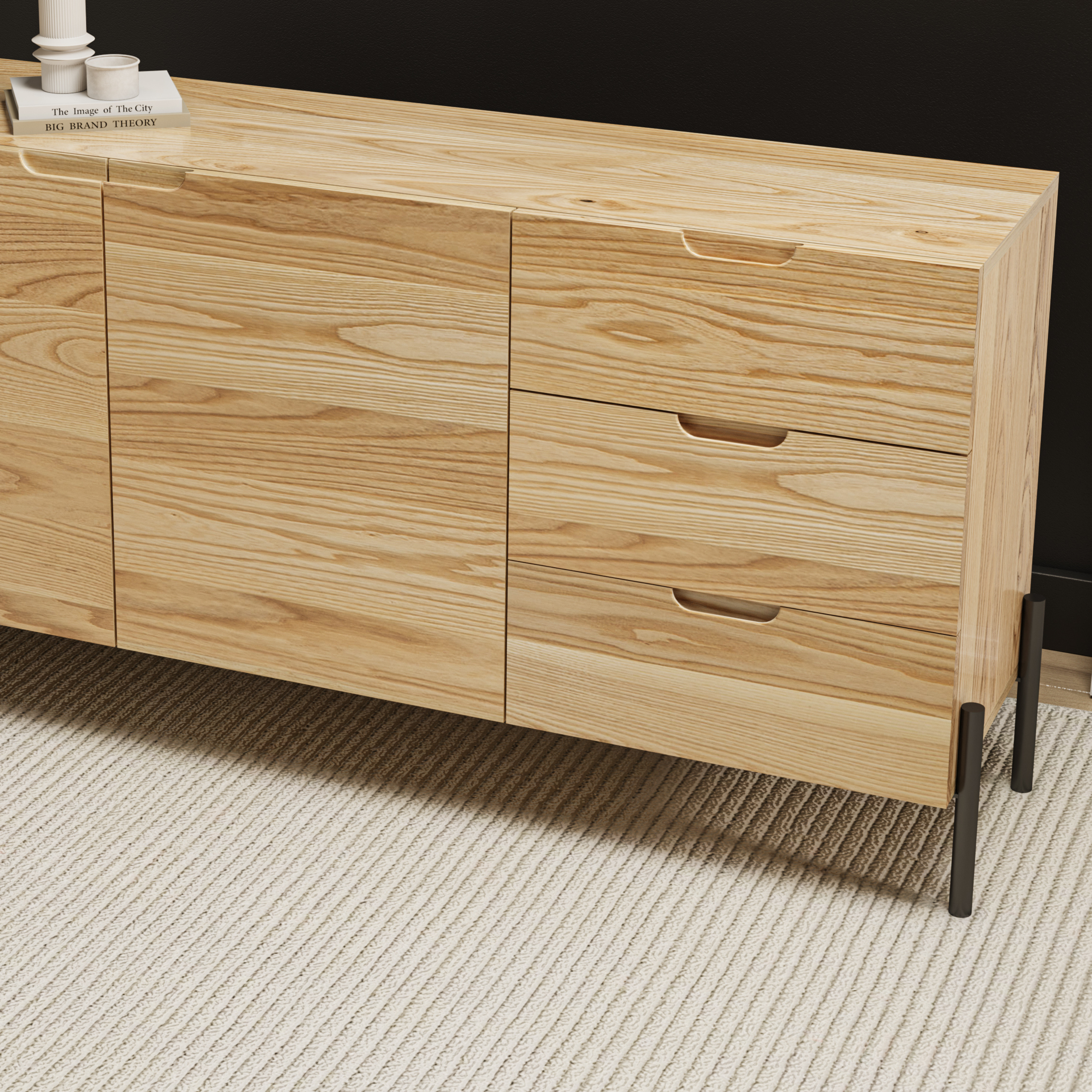 Fabriqué en bois massif et acier, le buffet Cabernet combine design minimaliste et fonctionnalité. Ses compartiments fermés permettent d'organiser harmonieusement vaisselle, ustensiles et linge de maison. Stable, robuste et d’inspiration scandinave, il apporte fonction et chaleur à tous les types d’espaces.