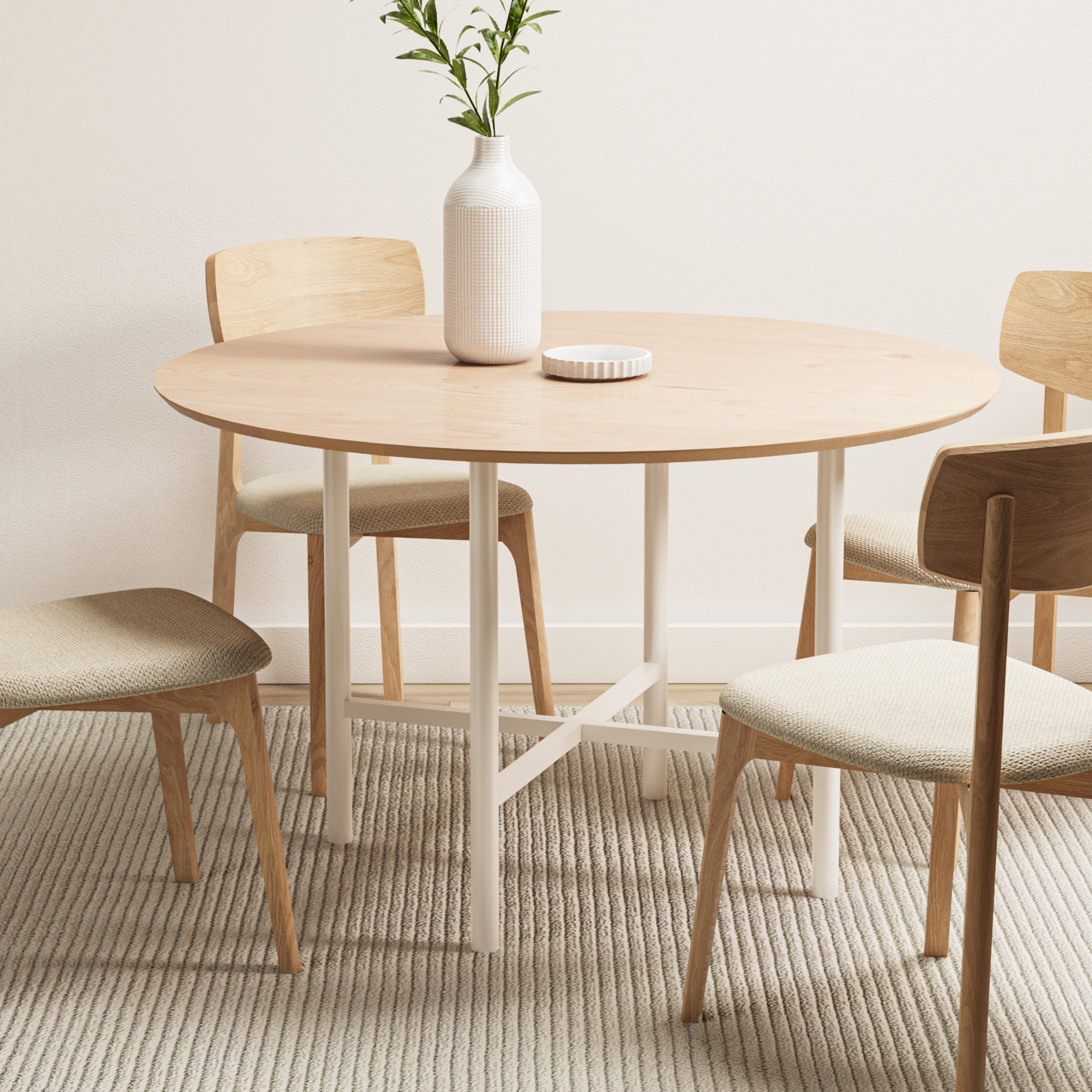 La table Chardo est une table ronde en bois massif de style champêtre modernisé, dotée d’une base en acier qui lui apporte stabilité et caractère. Son plateau avec biseau ajoute une touche sophistiquée tout en gardant un look épuré. Avec son diamètre de 48’’, elle est idéale pour optimiser l’espace d’un coin dinette chaleureux ou d’une petite salle à manger. Elle accueille confortablement 4 à 5 personnes et s’agence facilement à une grande variété de chaises. Polyvalente et intemporelle, la Chardo s’intègre aussi bien dans un décor rustique que dans un intérieur plus contemporain.