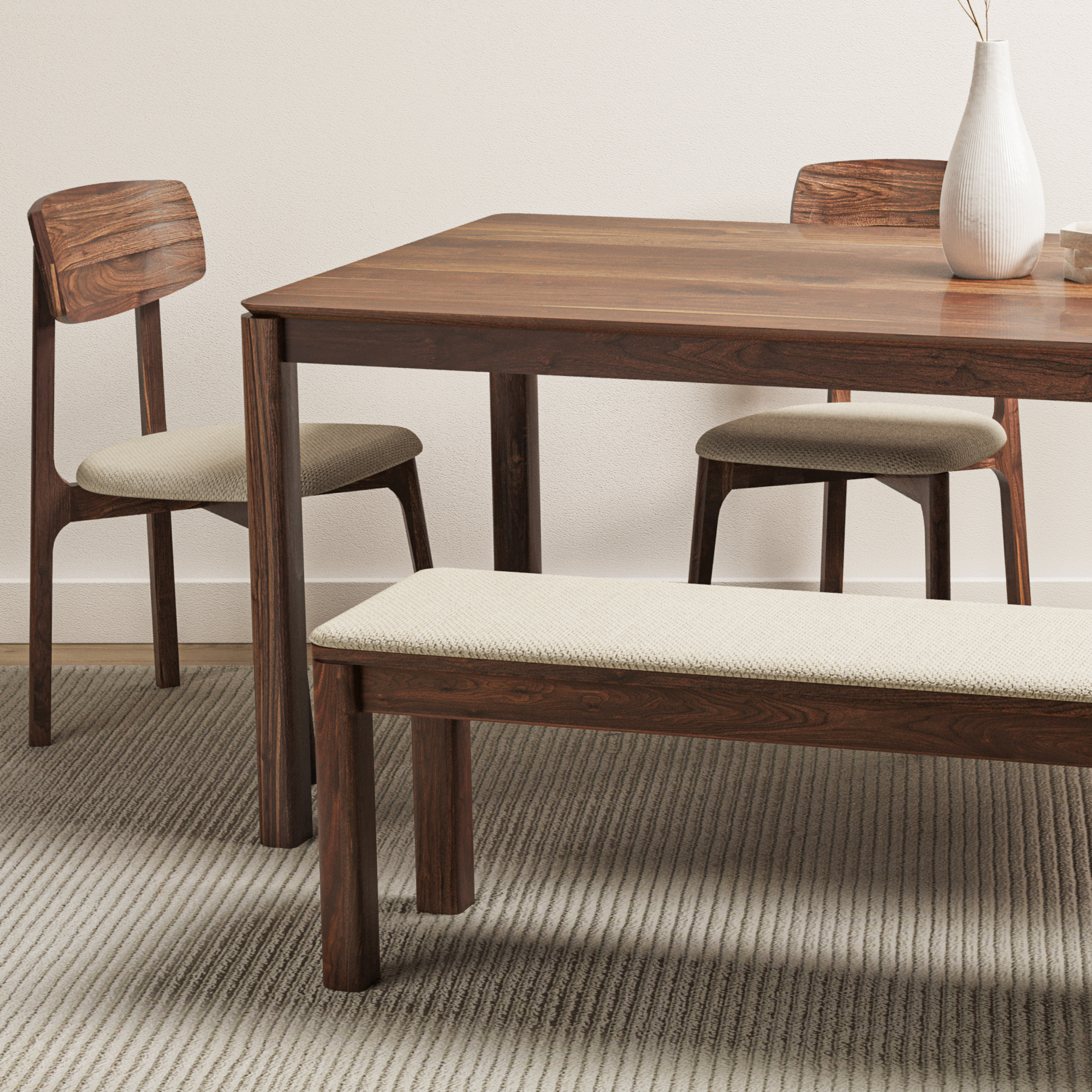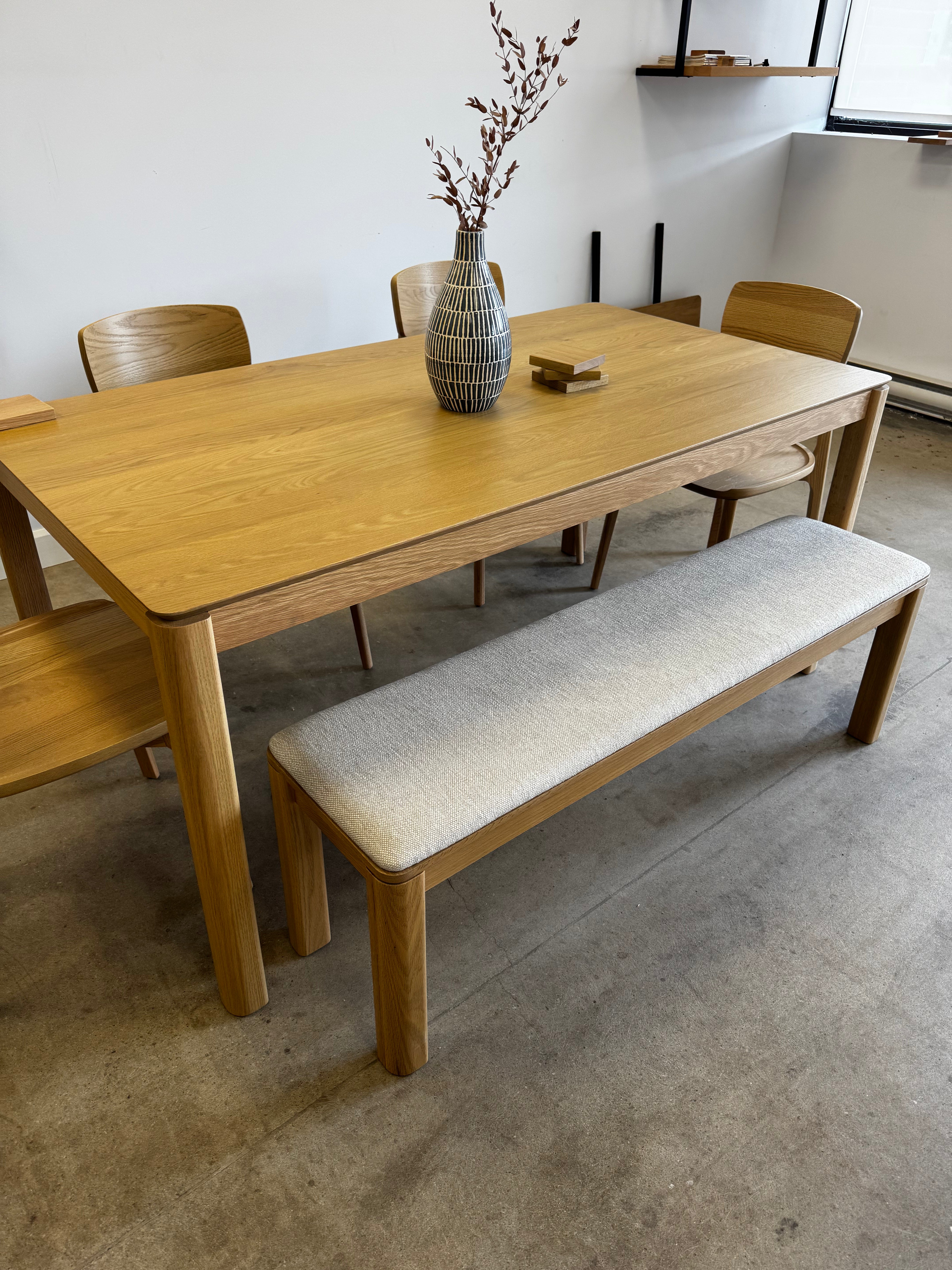 Le Saint-Pépin se distingue par ses angles arrondis qui apportent une touche de douceur et de modernité à son design. Disponible avec ou sans assise rembourrée en tissu, il allie confort et style pour créer une atmosphère chaleureuse et conviviale autour de la table. Polyvalent et intemporel, le Saint-Pépin s’intègre aisément à tous les espaces, du mobilier de salle à manger au banc d’entrée.
